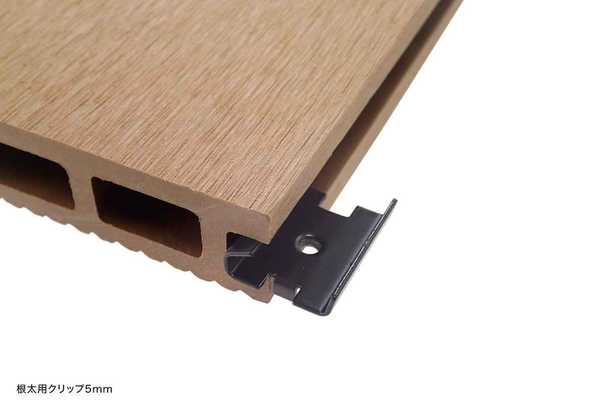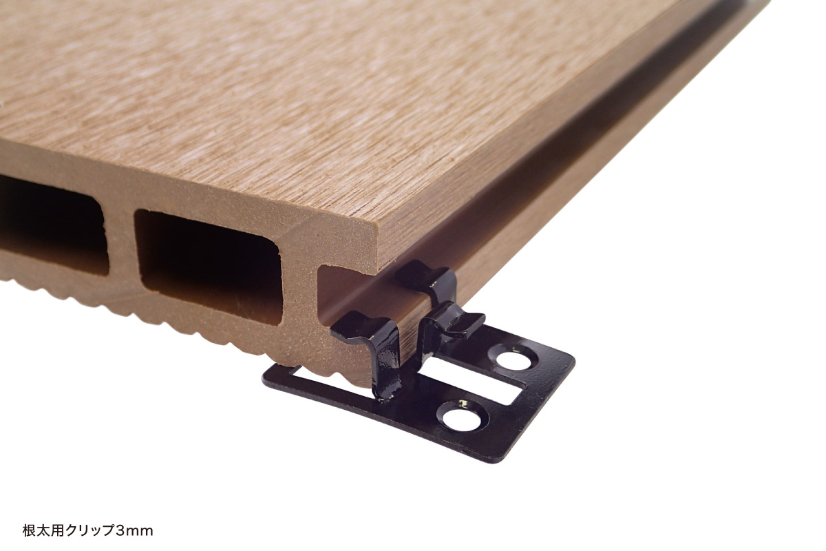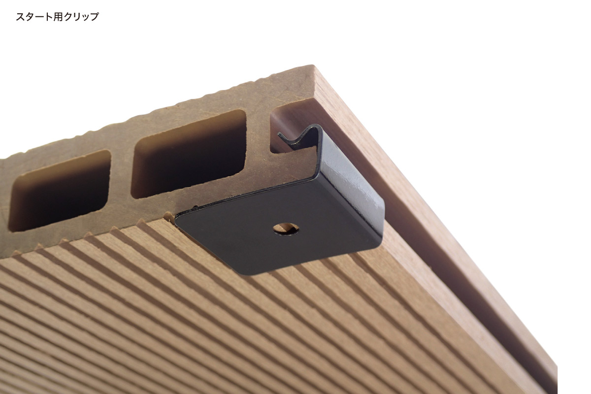 | 備考 | ※すべての金物に根太用ビスがついています。 ご注文の際は、鋼製下地用か木下地用のどちらかのビスをご指定ください。 【注意】バイタルデッキR30は根太用クリップ[5mm]のみ対応。 スタート・エンドはサラドリルビスで脳天打ちとなります。 |